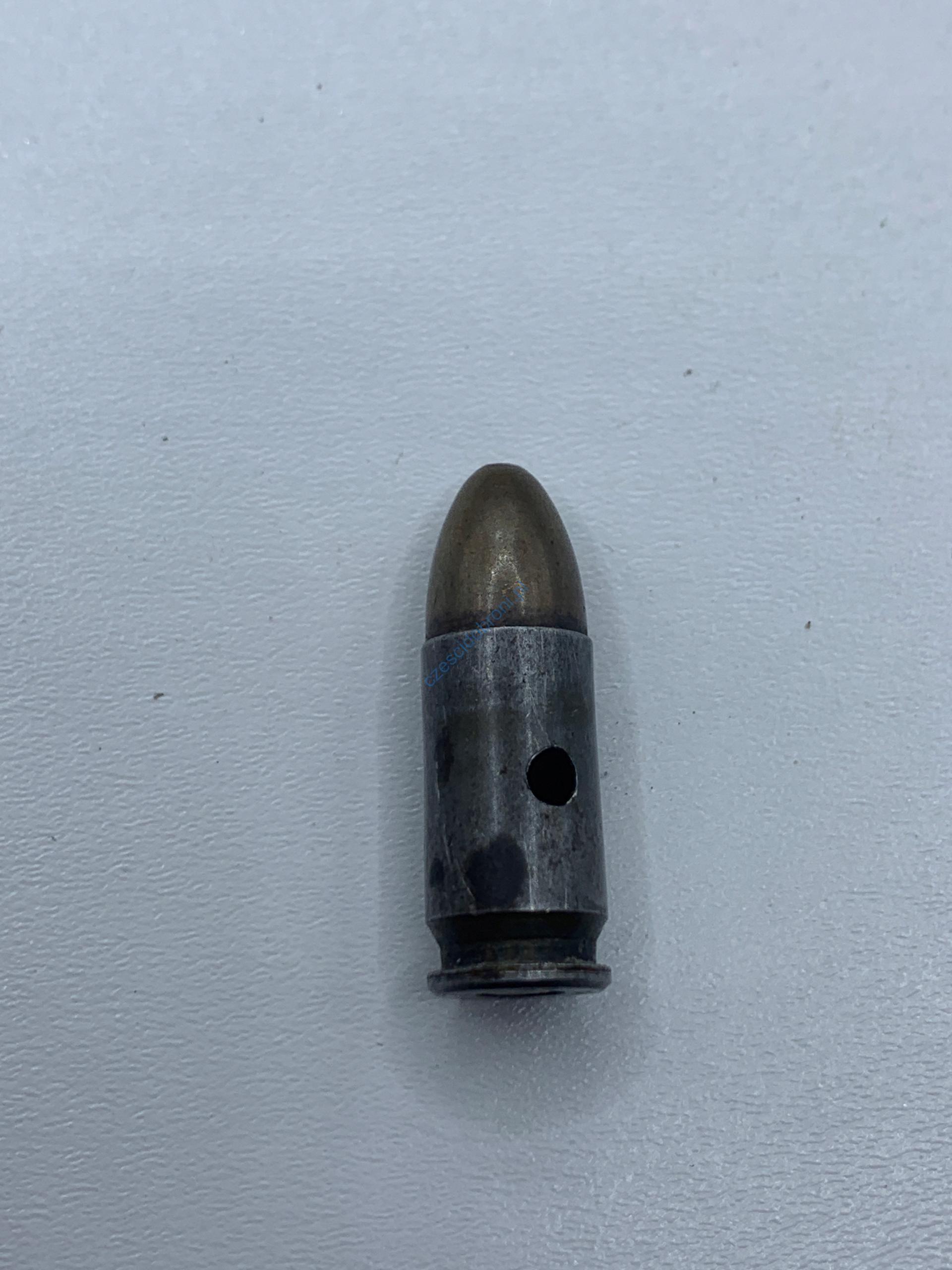 Amunicja pozbawiona istotnych elementów amunicji(pozbawiona ładunku prochowego i spłonka nieaktywna lub zbita).Łuska wiercona.