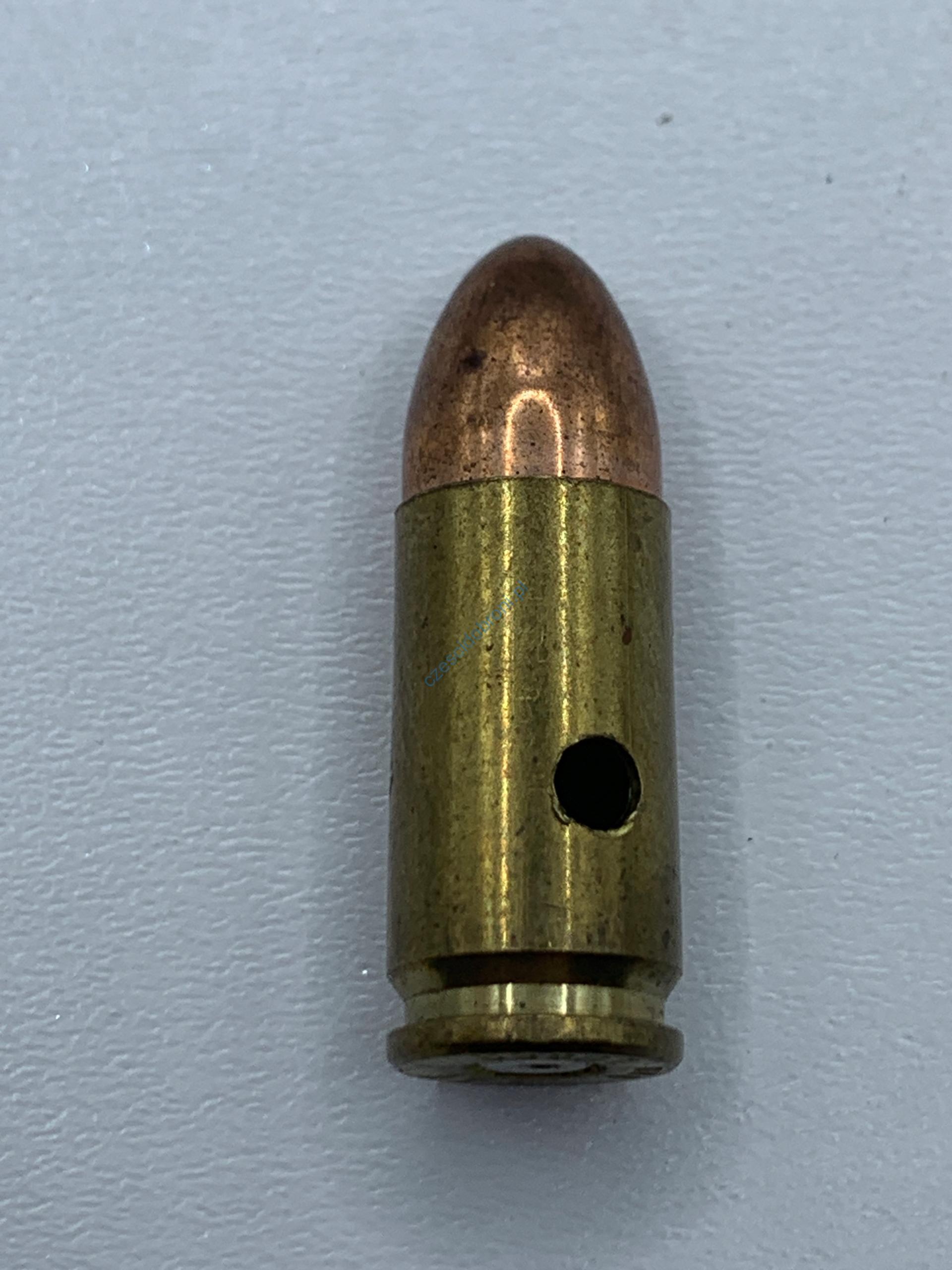 Amunicja pozbawiona istotnych elementów amunicji(pozbawiona ładunku prochowego i spłonka nieaktywna lub zbita).Łuska wiercona.