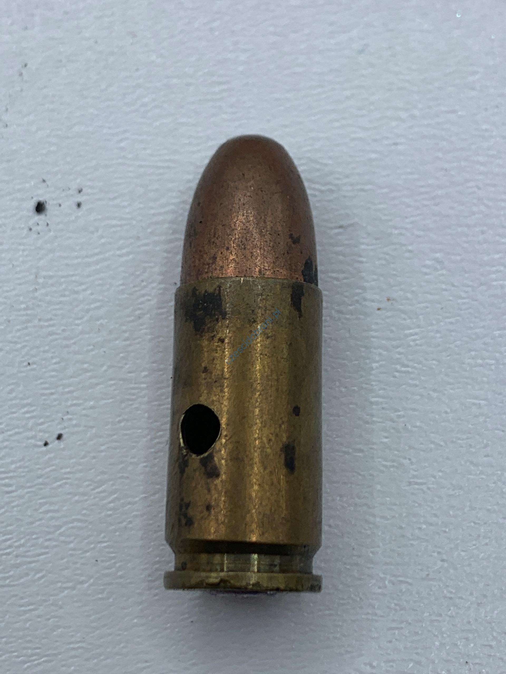 Amunicja pozbawiona istotnych elementów amunicji(pozbawiona ładunku prochowego i spłonka nieaktywna lub zbita).Łuska wiercona.